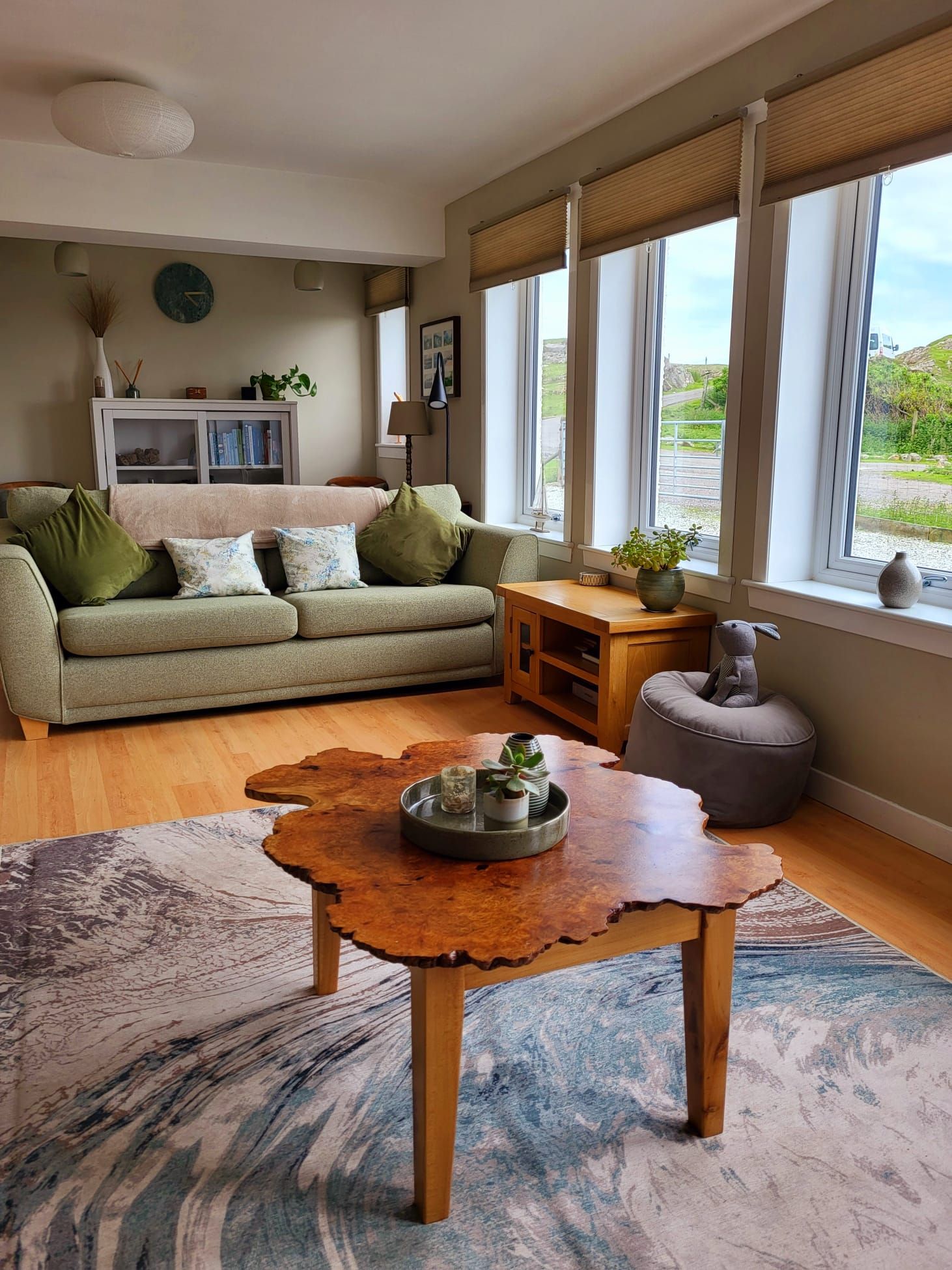 The open aspect of the garden gives maximum opportunity to enjoy the surrounding views. A large gate opens on to the driveway at the side of the house. Spacious areas to the front and rear provide ample room to relax, play and dine alfresco. The picnic table and other seating area are perfectly situated to make the most of the beautiful surroundings. You can enjoy breakfast in the morning sunshine and in the evening, watch as the sun sets over the Loch of Reiff. To the front of the house, is a bench and bespoke table where you can sit and immerse yourself in the tranquility of this coastal location watching the ferry, fishing boats and yachts sail by.