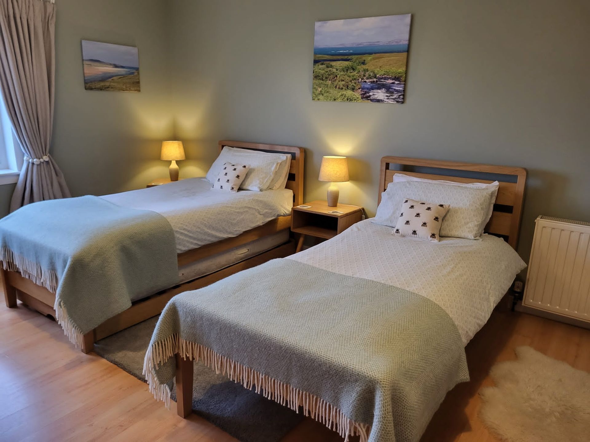 Both bedrooms look out over the Loch of Reiff where wildlife including herons, ducks and on occasion otters, can be spotted. During the summer months, the late evening sunshine gently lights the rooms in a warm glow.